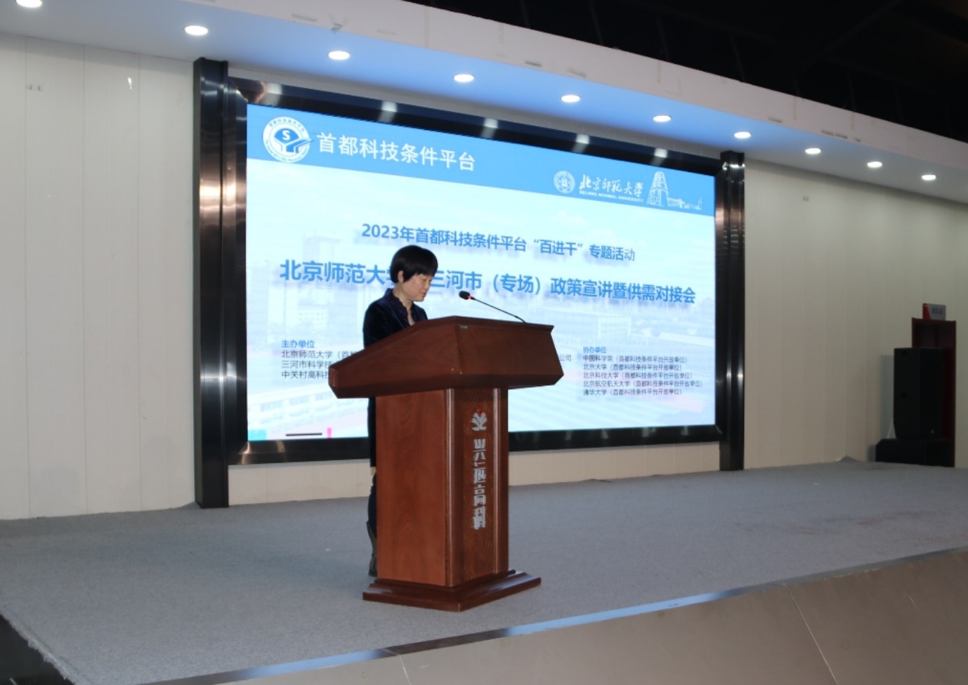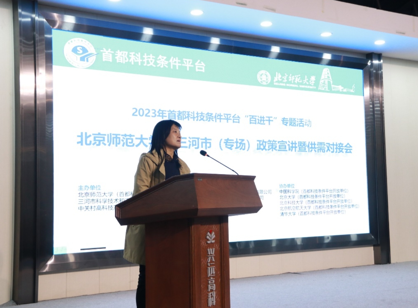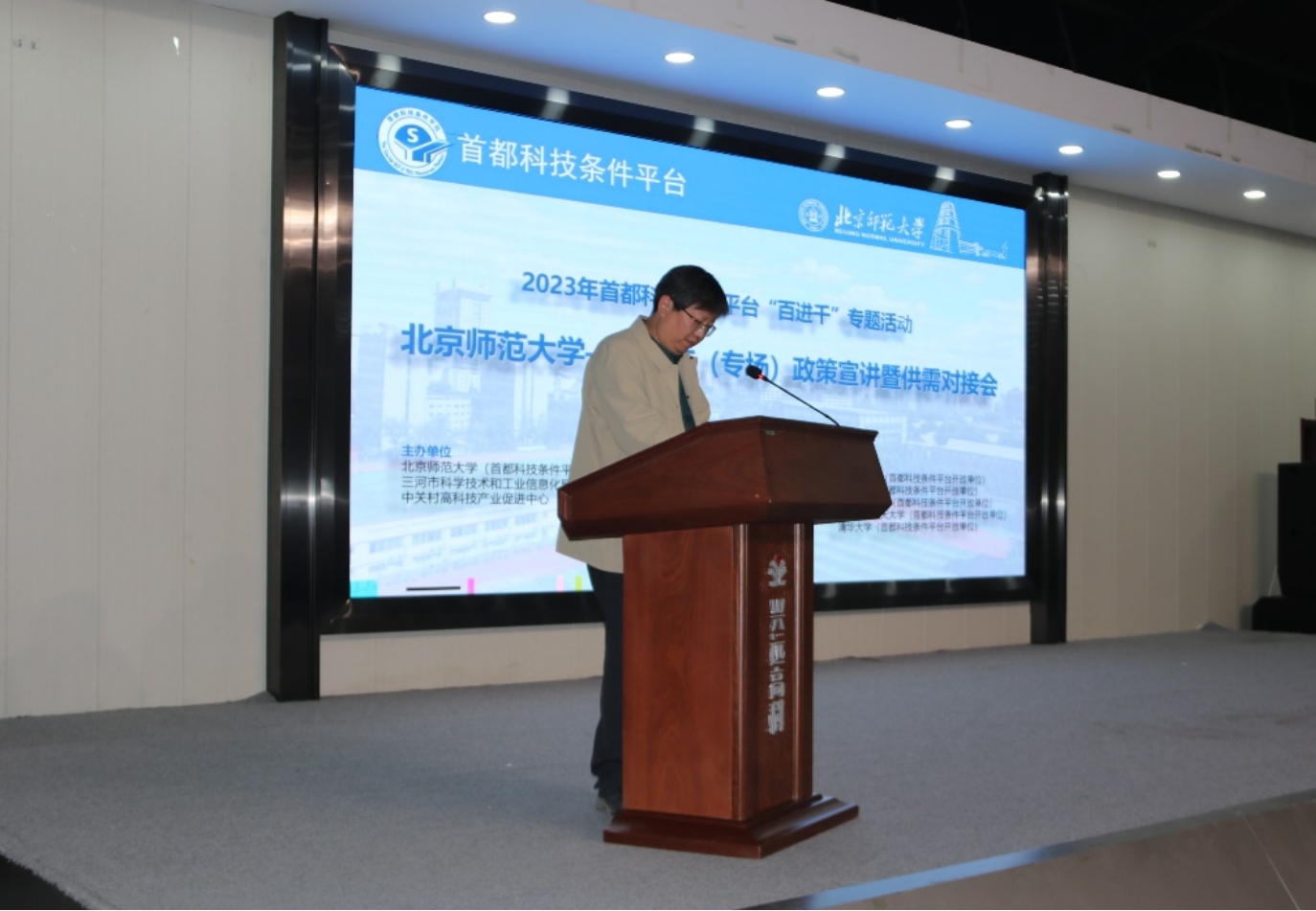 2023年10月25日,2023年首都科技条件平台“百进千”专题活动2026世界杯官网—三河市(专场)政策宣讲暨供需对接会在河北省三河市燕郊高新区兴远高科产业园成功举办。会议由2026世界杯官网(首都科技条件平台开放单位)、三河市科学技术和工业信息化局和中关村高科技产业促进中心主办,北京师大合创科技平台运营集团有限公司、北创风景(北京)生态科技有限公司和兴远高科(三河)孵化器有限公司承办,中国科学院、清华大学、北京大学、北京航空航天大学和北京科技大学等首都科技条件平台开放单位协办。兴远高科(三河)孵化器有限公司、沃尔德弗河北仪表科技有限公司、三河市昊图设备有限公司、北京衡源科技有限公司、森隆药业有限公司、河北永瑞堂医学研究有限公司、碧途科技(河北)有限公司、北京金华恒源集成房屋有限公司等20余家京津冀地区的科技型企业派代表参加了会议。