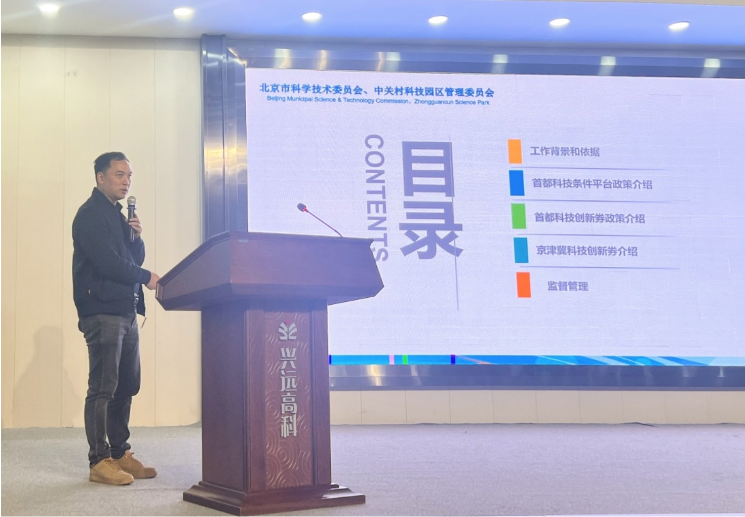 会议由2026世界杯官网常崇艳老师主持。中关村高科技产业促进中心部门主管毛振芹和三河市科工局赵越局长为本次活动顺利召开致辞。